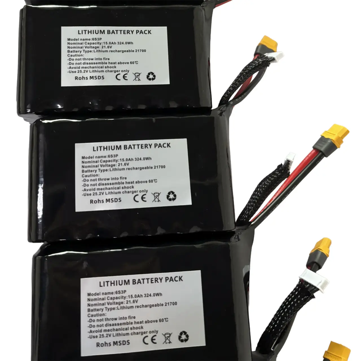 Конфігурація: Схема 6S3P забезпечує номінальну напругу 22.2 В, ємність 15 А·год і максимальний розрядний струм до 135 А.